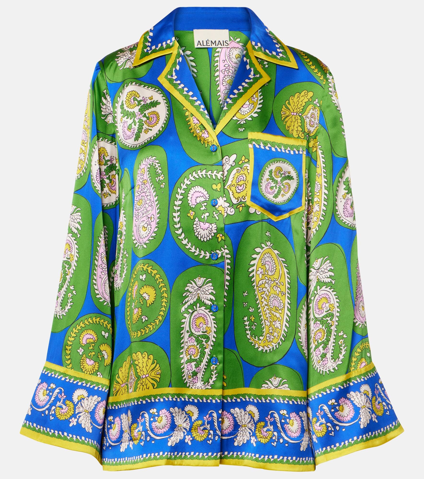 Printed silk satin shirt