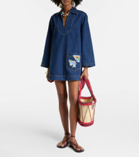A contemporary brand with an artisanal focus, Alemais celebrates the art of fashion through an eclectic mix of patterns and prints. The Speedy minidress is made from denim in a tunic silhouette with colorful patch detailing. Product Details - Material: 100% cotton - Care instructions: hand wash - Made in China - Designer color name: Indigo - Item color: blue - Collar: one-piece - Pockets: patch - Item number: P01063684 Size & Fit - True to size - Designed for a loose fit - Non-stretchy fabric - The model seen in the picture is 178cm-5'10" and wearing a size UK 6