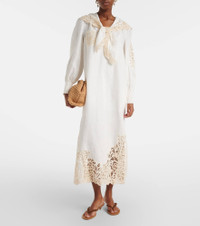 x LRNCE Rosemary embroidered linen midi dress
