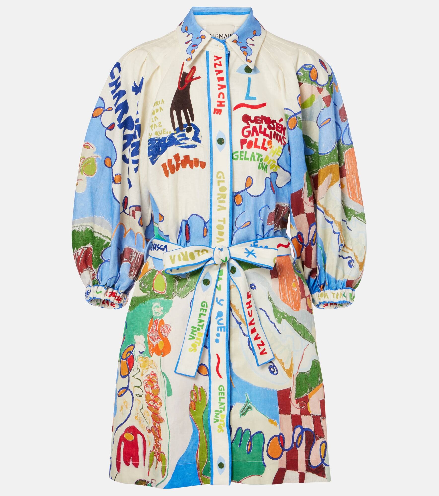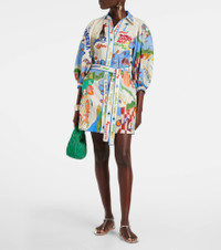 + Nadia Hernandez belted printed linen shirt dress Cream