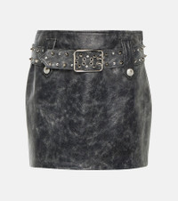 Belted embellished leather miniskirt