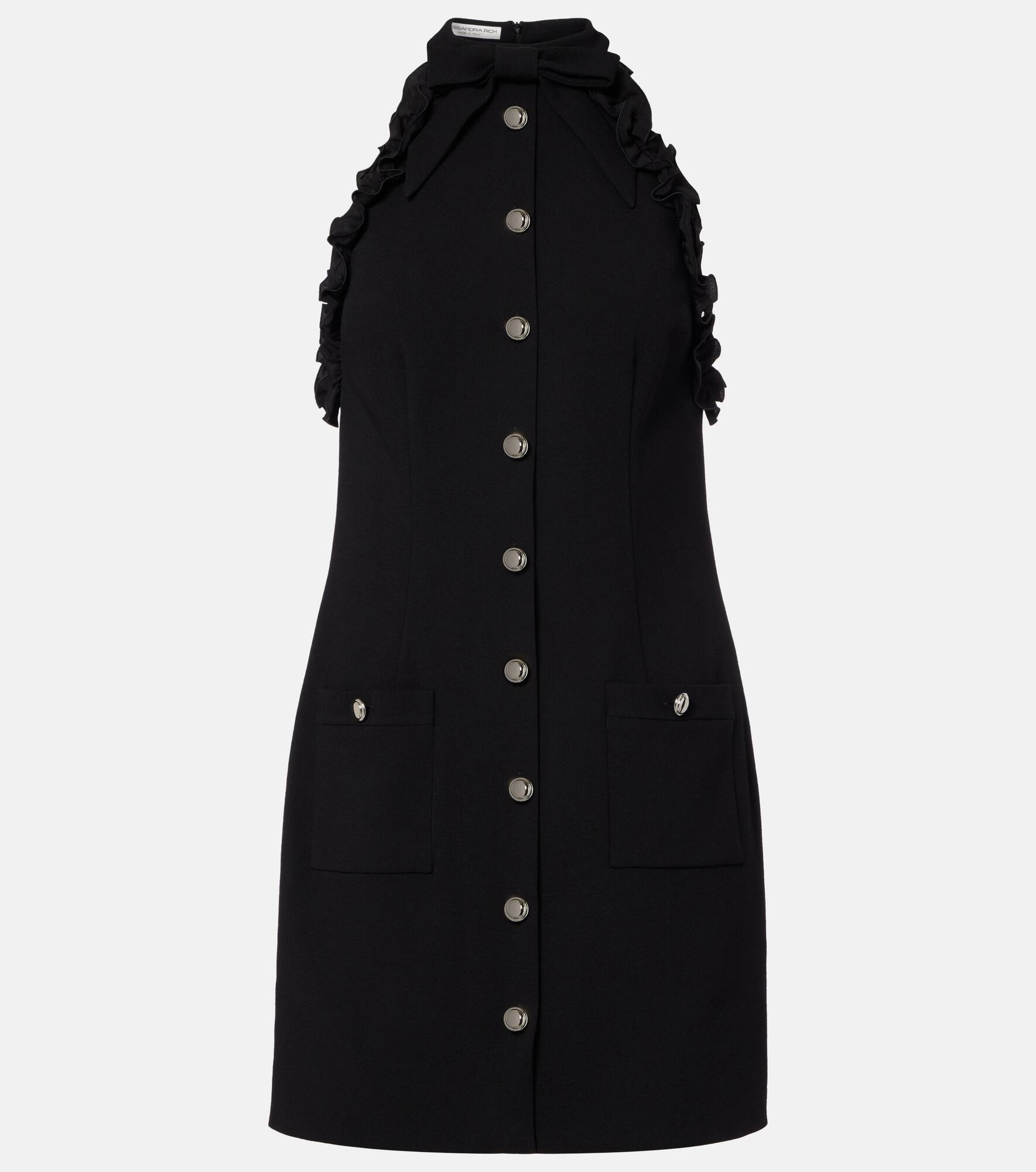 Count on Alessandra Rich for spotlight-stealing looks with feminine flair. Crafted from wool-blend crepe, this minidress features ruffles around the sleeves, a bow detail at the neckline, and concealed zip closure. Product Details - Material: 96% wool, 3% polyamide, 1% elastane - Care instructions: dry clean - Made in Italy - Designer color name: Black - Item color: black - Lining: 100% silk - Material II: 100% polyester - Closure: concealed zipper - Pockets: patch pockets - Hardware color: silver - Item number: P01051379 Size & Fit - True to size - Cinched waist - Non-stretchy fabric - The model seen in the picture is 178cm-5'10" and wearing a size IT 40