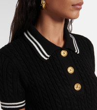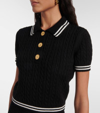 Cable-knit cropped cotton polo shirt