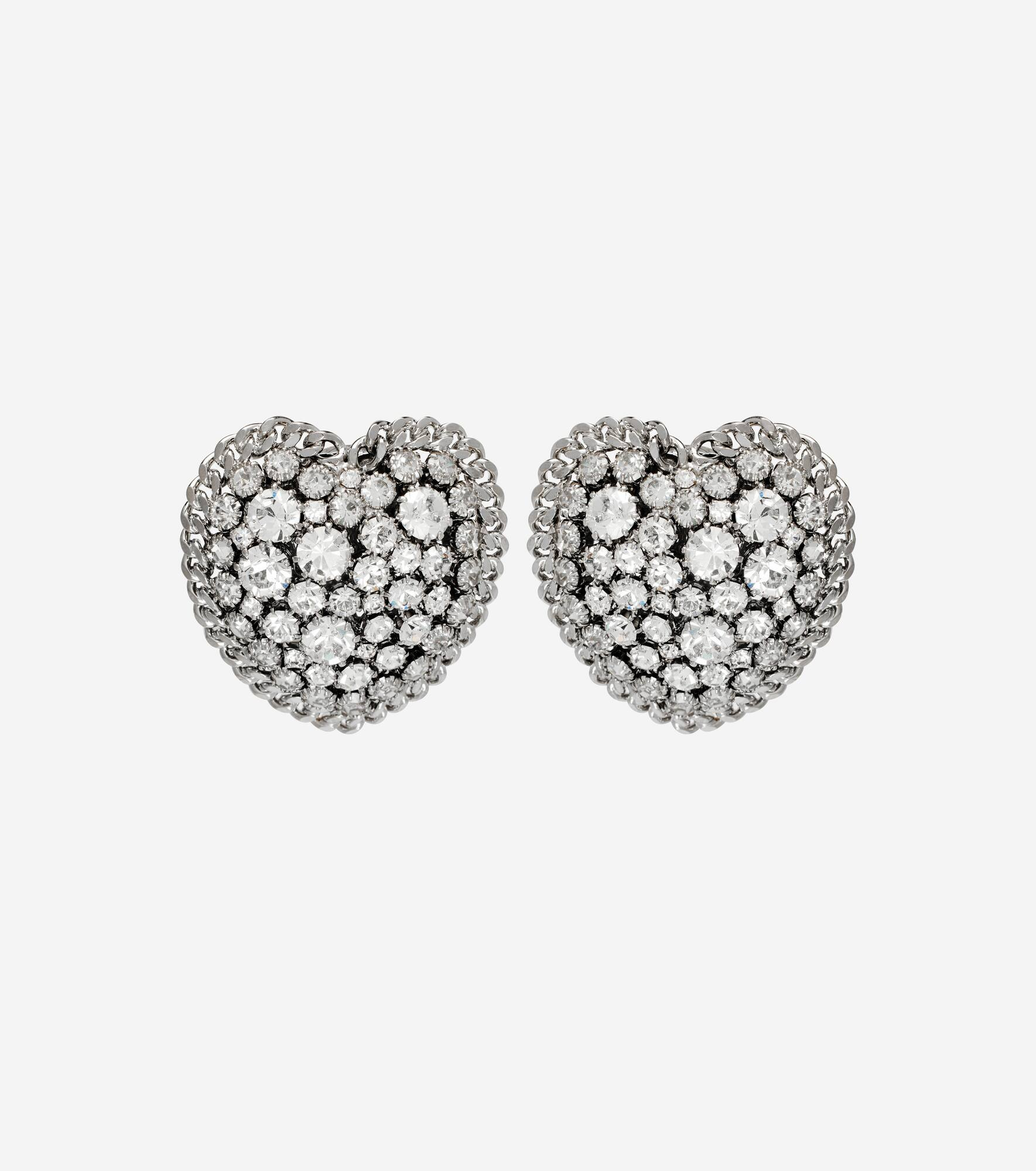 If you’re seeking statement-making fashion that’s made to perfection, look no further than Alessandra Rich. These clip-on earrings are designed with a charming heart shape and boast shimmering crystal embellishments. Product Details - Material: brass, crystals - Made in Italy - Item color: silver - Closure: clip-on - Item number: P01038679 Size & Fit - Length 4cm-1.5" - Max. width 3.5cm-1.5"