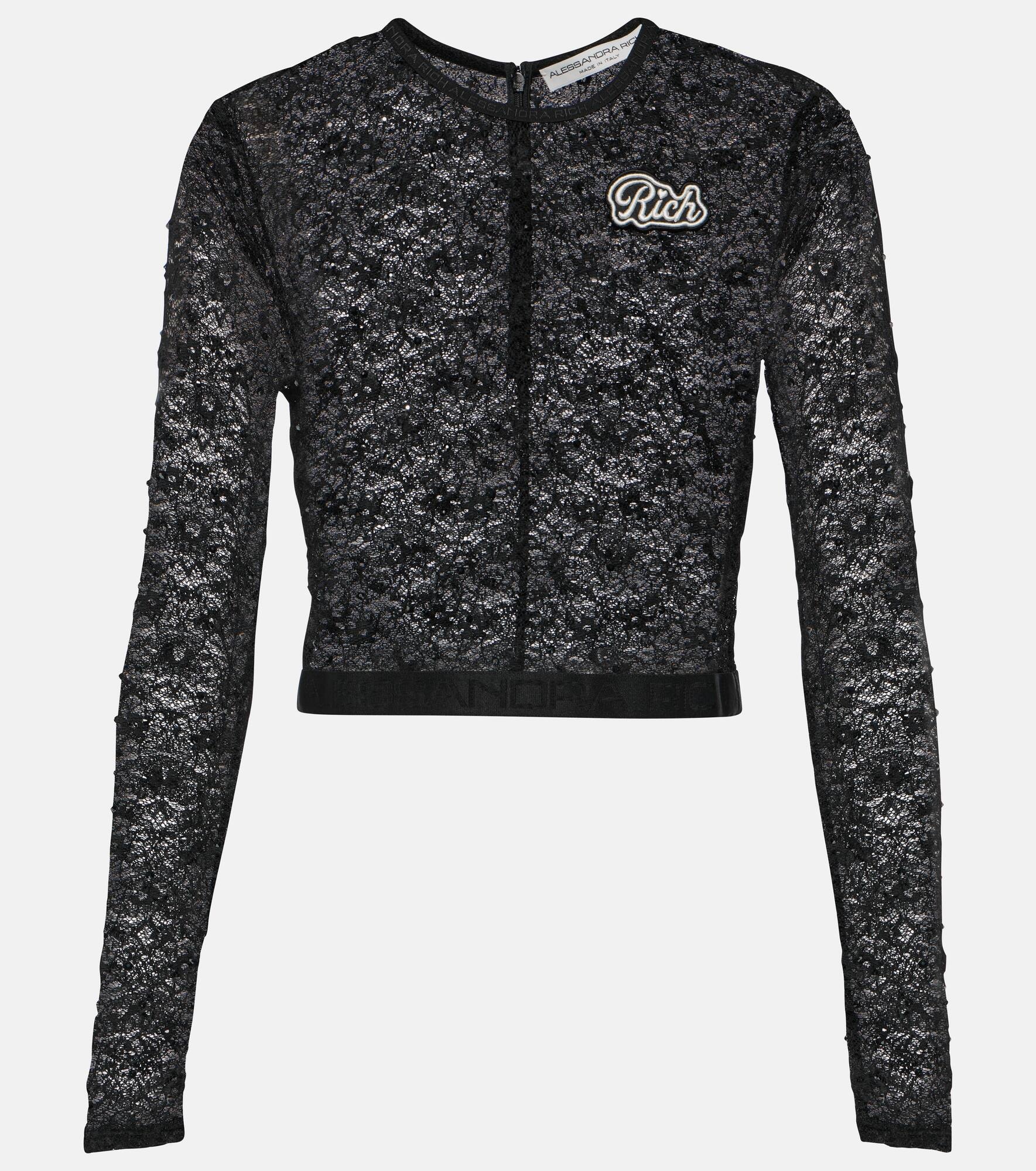 STRETCH LACE TOP WITH HOTFIX AND PATCH