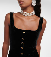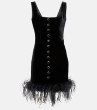 Feather-trimmed velvet minidress