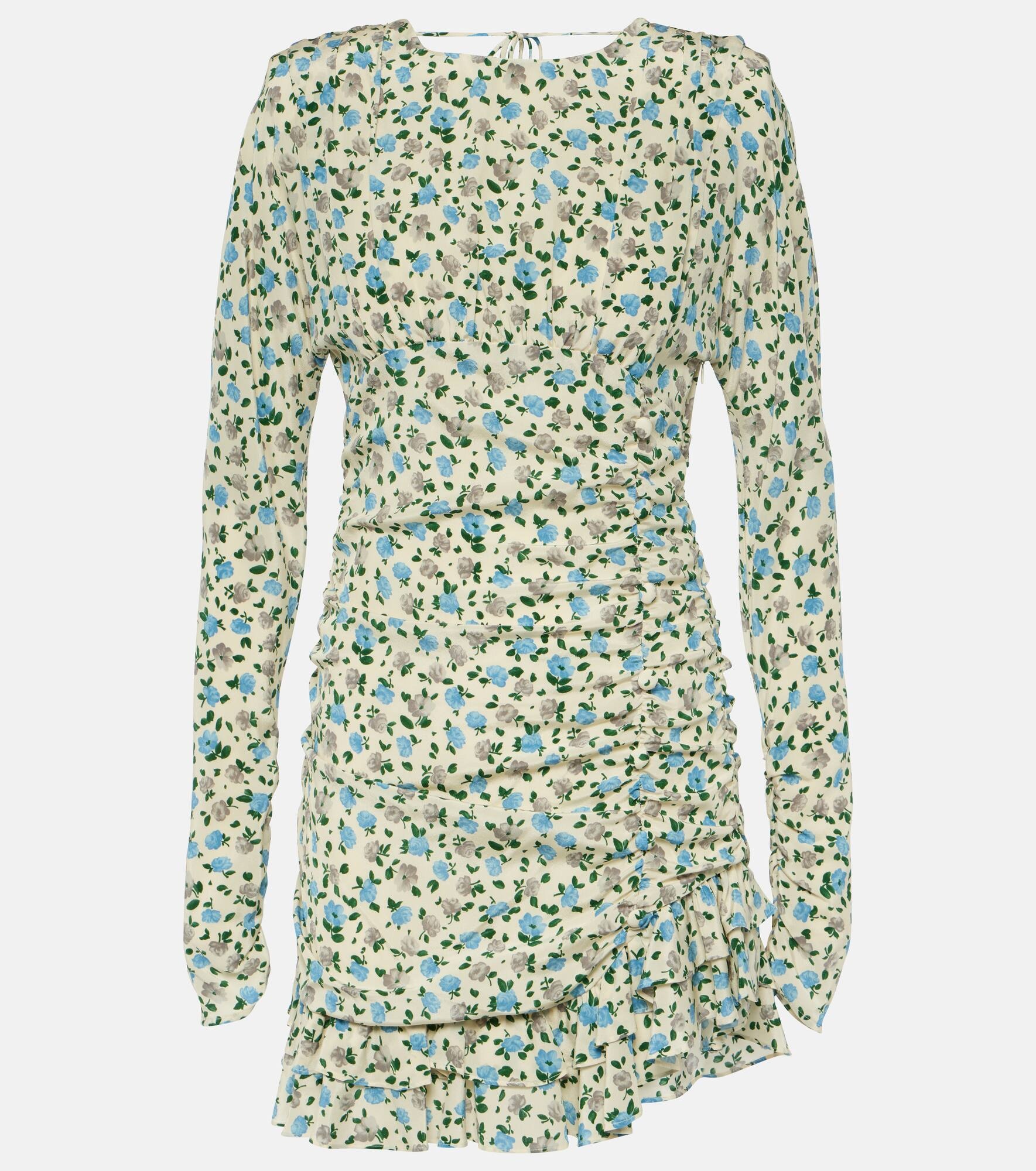 Floral open-back silk minidress