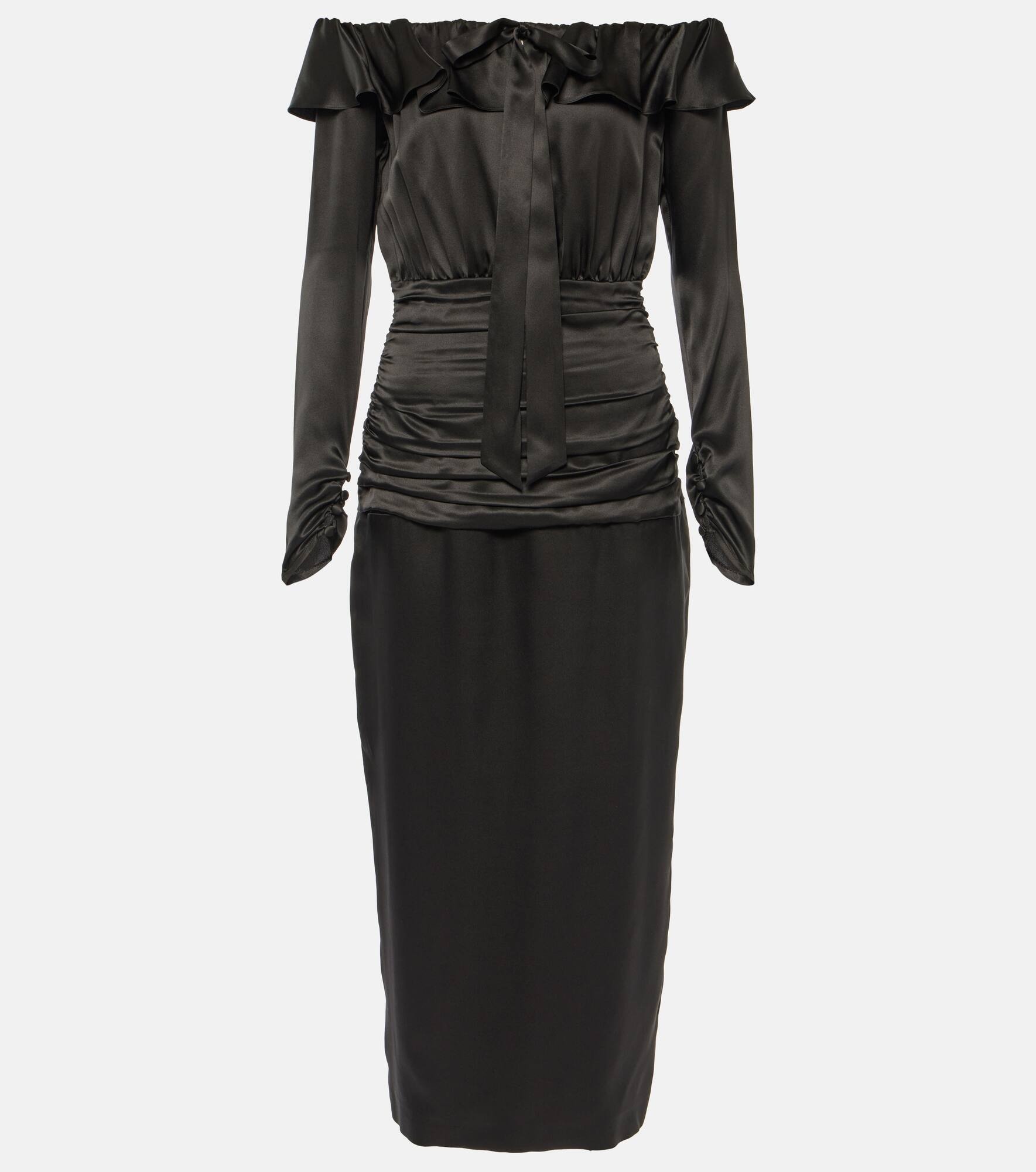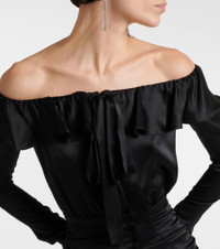 Product Details - Material: 100% silk - Care instructions: dry clean - Made in Italy - Designer color name: Black - Lining: 65% viscose, 35% polyester - Closure: self-ties, invisible zipper - Item number: P00875480 Size & Fit - True to size - Off-the-shoulder - Cinched waist - Non-stretchy fabric - slit length 38,0cm-15" - The model seen in the picture is 178cm-5'10" and wearing a size IT 40
