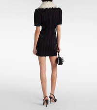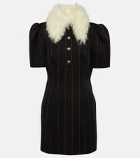 Pinstripe collared wool-blend minidress