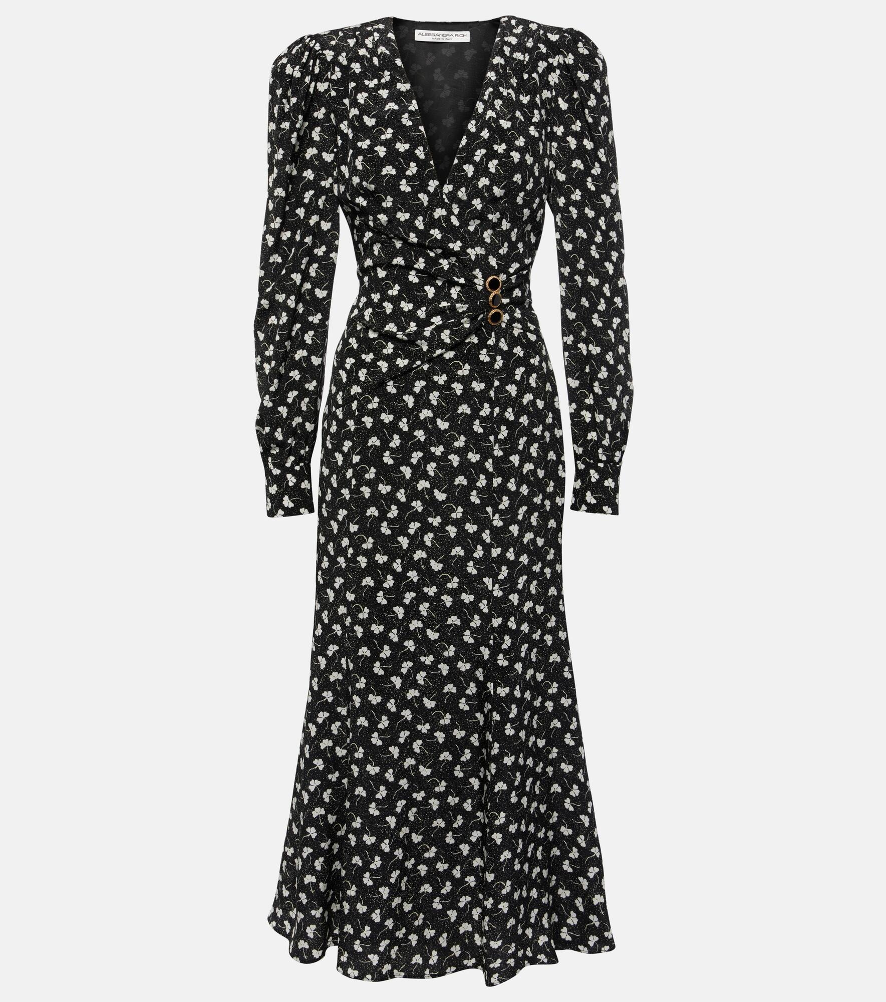 CLOVER PRINT SILK DRAPED DRESS WITH JWL BUTTONS