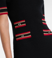 This polo dress from Alessandra Rich is cut from virgin wool from merino sheep to a midi silhouette and features a ribbed-knit finish. This garment is designed with a classic collar and half-buttoned front. Product Details - Material: 100% virgin wool - Care instructions: dry clean - Made in Italy - Designer color name: Black - Item color: black, red, beige - Hardware color: silver - Closure: partially buttoned front - Collar: polo collar - Pockets: faux pockets - Short vent - Item number: P01051408 Size & Fit - True to size - Dropped shoulders - Fitted - Stretchy fabric - The model seen in the picture is 178cm-5'10" and wearing a size IT 40