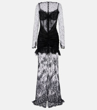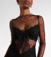 Sheer cotton-blend lace gown