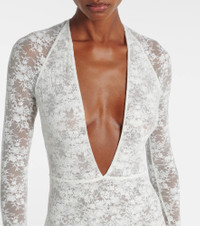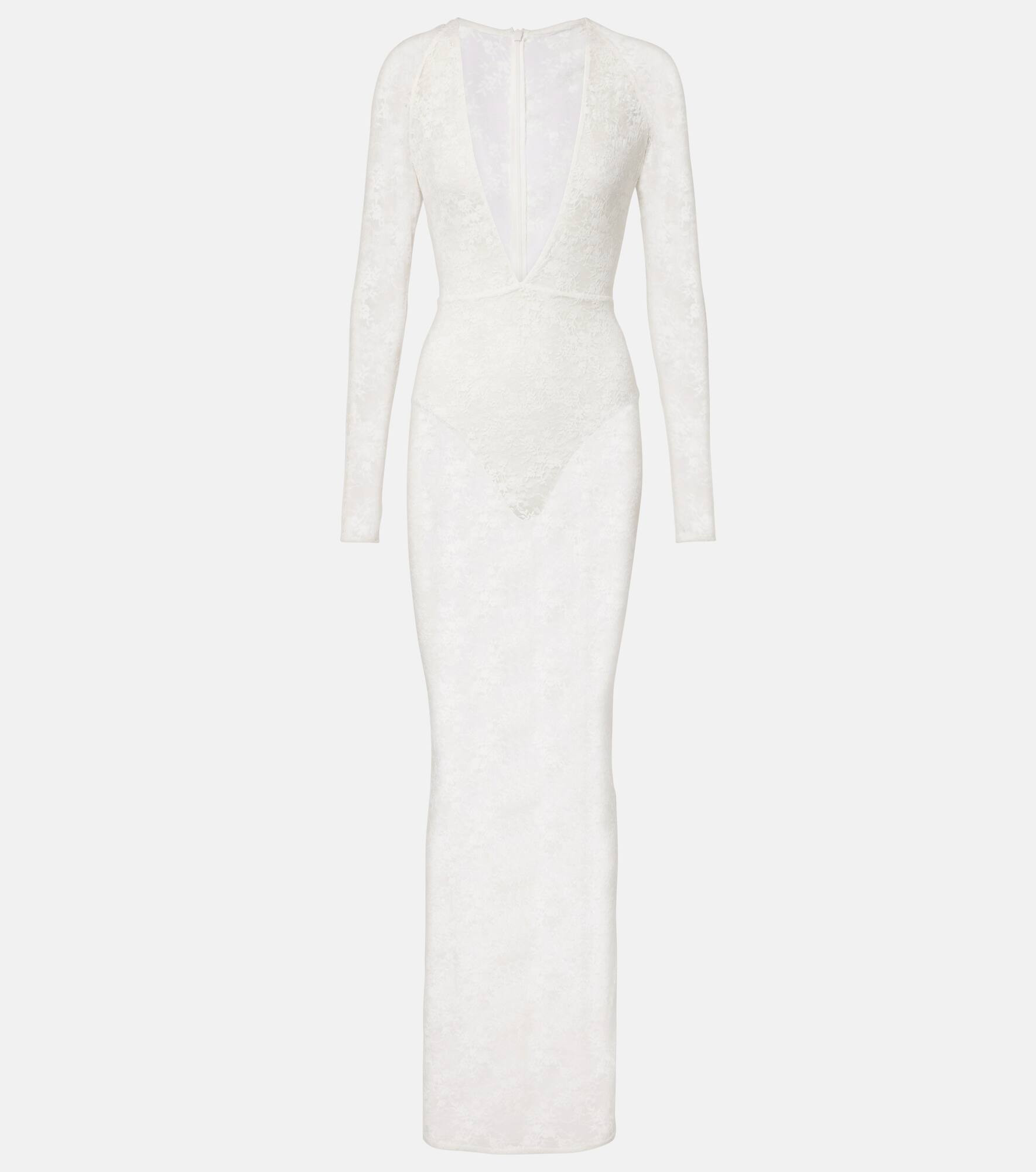 Bold with modern allure, this Alex Perry bridal gown is crafted from fine floral lace with a sheer finish. Complete with integrated briefs and a zip-up vent in the back, this sleek design is a showstopper. Product Details - Material: 90% polyamide, 10% elastane - Care instructions: dry clean - Made in Australia - Designer color name: White - Item color: white - Closure: zipped back - Vent: single - Item number: P01091574 Size & Fit - True to size - Petite sizing - Semi-sheer - Fitted - Slightly stretchy fabric - Medium-cut leg - The model seen in the picture is 178cm-5'10" and wearing a size UK 8