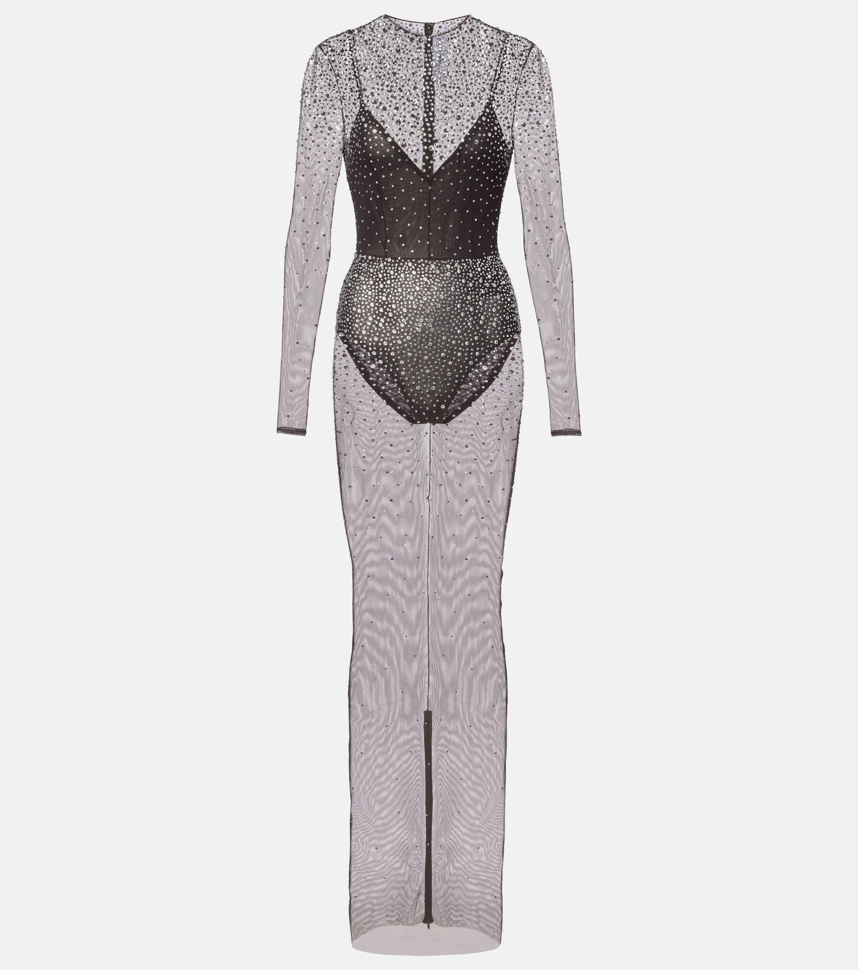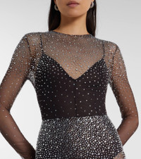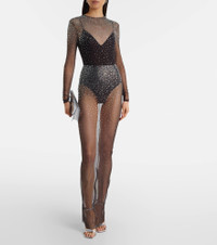 Crystal-embellished mesh maxi dress