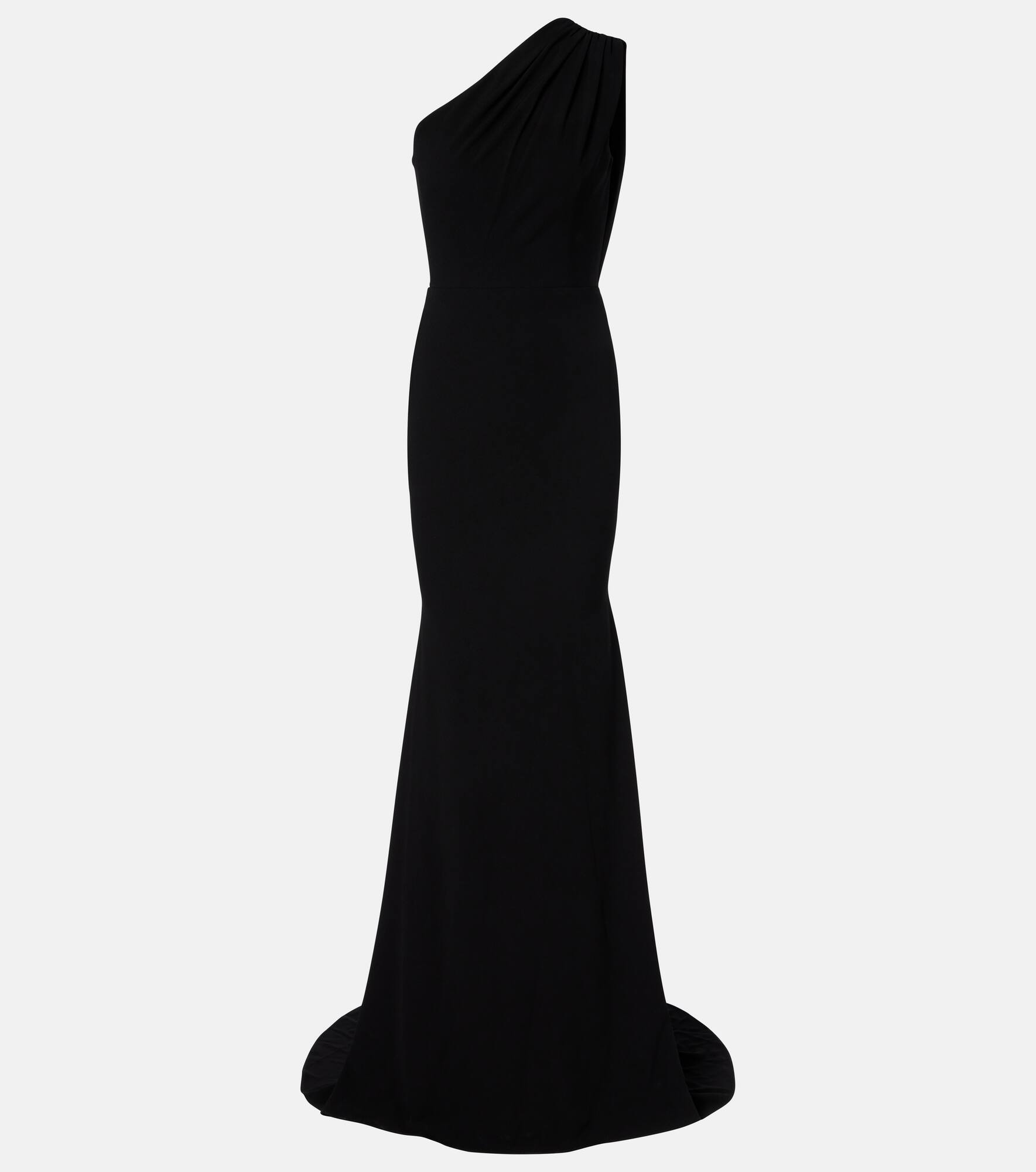 This crepe gown by Alex Perry is a captivating choice for your next event. Shaped with a trumpet silhouette, this piece is designed with a flattering one-shoulder neckline and a graceful drape that cascades from shoulder to waist. Product Details - Material: 80% acetate, 20% polyester - Care instructions: dry clean - Made in China - Designer color name: Black - Item color: black - Closure: invisible zipper - Boning - Item number: P01051487 Size & Fit - True to size - Internal boned corset for support - Fitted - Non-stretchy fabric - The model seen in the picture is 178cm-5'10" and wearing a size UK 8