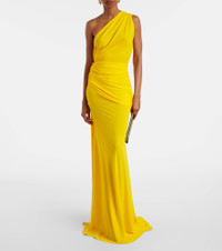 A glamorous choice for special occasions, this Alex Perry gown is crafted from fluid crepe jersey and boasts an elegant draped design. Its one-shoulder neckline and sweeping floor-length skirt complete the look with timeless sophistication. Product Details - Material: 91% polyester (recycled), 9% elastane - Care instructions: dry clean - Made in China - Designer color name: Yellow - Item color: yellow - Item number: P01051479 Size & Fit - True to size - Low back - Cinched waist - Slightly stretchy fabric - The model seen in the picture is 178cm-5'10" and wearing a size UK 8