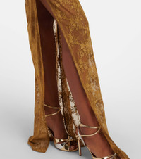Ruched Stretch-Lace Maxi Skirt khaki
