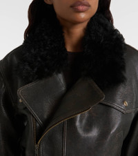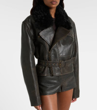 Standout in Alex Perry, whose designs are known for their sharp, refined impact on the red carpet. Crafted from leather, this belted biker jacket features a cropped silhouette and a shearling-trimmed lapel. Product Details - Material: 100% lamb leather - Care instructions: specialist clean - Made in Turkey - Designer color name: Dark Brown - Item color: brown - Lining: 100% viscose - Details: 100% shearling - Contains non-textile parts of animal origin - Closure: zipped front - Pockets: welt pockets - Attached belt - Elasticated waistband - Cuff: zipped - Item number: P01081124 Size & Fit - True to size - Straight fit - Adjustable hem - Non-stretchy fabric - Cropped - The model seen in the picture is 178cm-5'10" and wearing a size XS