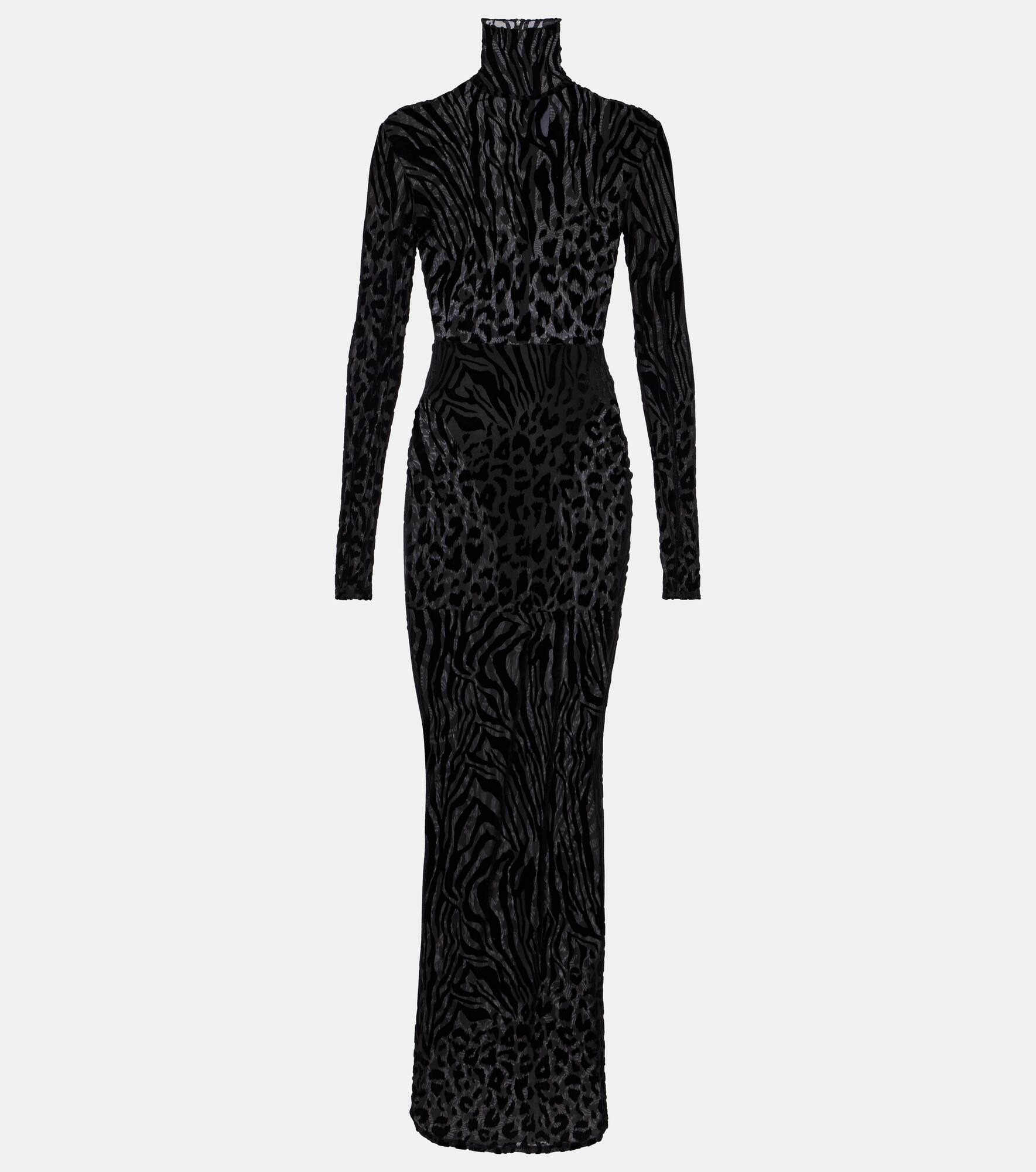 Sheer animal-print devoré maxi dress