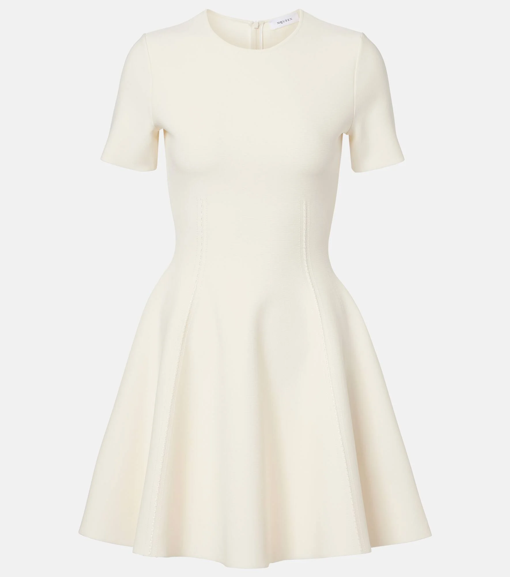 The house of McQueen continues to revisit traditional silhouettes through a new lens. A modern take on a classic style, this minidress is knitted into an asymmetric silhouette. Product Details - Material: 76% viscose, 16% polyester, 6% polyamide, 2% elastane - Care instructions: dry clean - Made in Italy - Color: white - Designer color name: 9004 - Trim: 83% viscose, 17% polyester - Details: 100% viscose - Closure: invisible zipper - Item number: P01121937 Size & Fit - True to size - Cinched waist - Stretchy fabric - The model seen in the picture is 178cm-5'10" and wearing a size IT 40