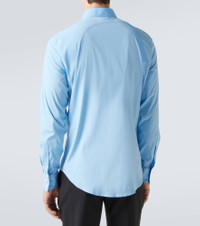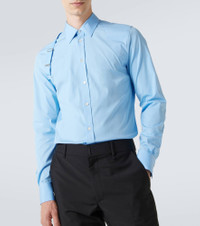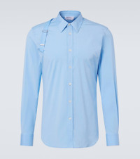 The harness detail is a McQueen signature, which appears at the shoulders of this shirt. Made from crisp cotton-blend poplin, the style is complete with a pointed collar and double-button cuffs. Product Details - Material: 97% cotton, 3% elastane - Care instructions: dry clean - Made in Italy - Designer color name: Jermyn St. Blue - Item color: blue - Contains non-textile parts of animal origin - Dress shirt - Hardware color: silver - Collar: classic (Straight point) - Cuff: two buttons - Item number: P01076844 Size & Fit - True to size - Without pleats in the back - Classic fit - Non-stretchy fabric - Falls below the hip - Height of model is 189cm-74.5" and wears a size 16