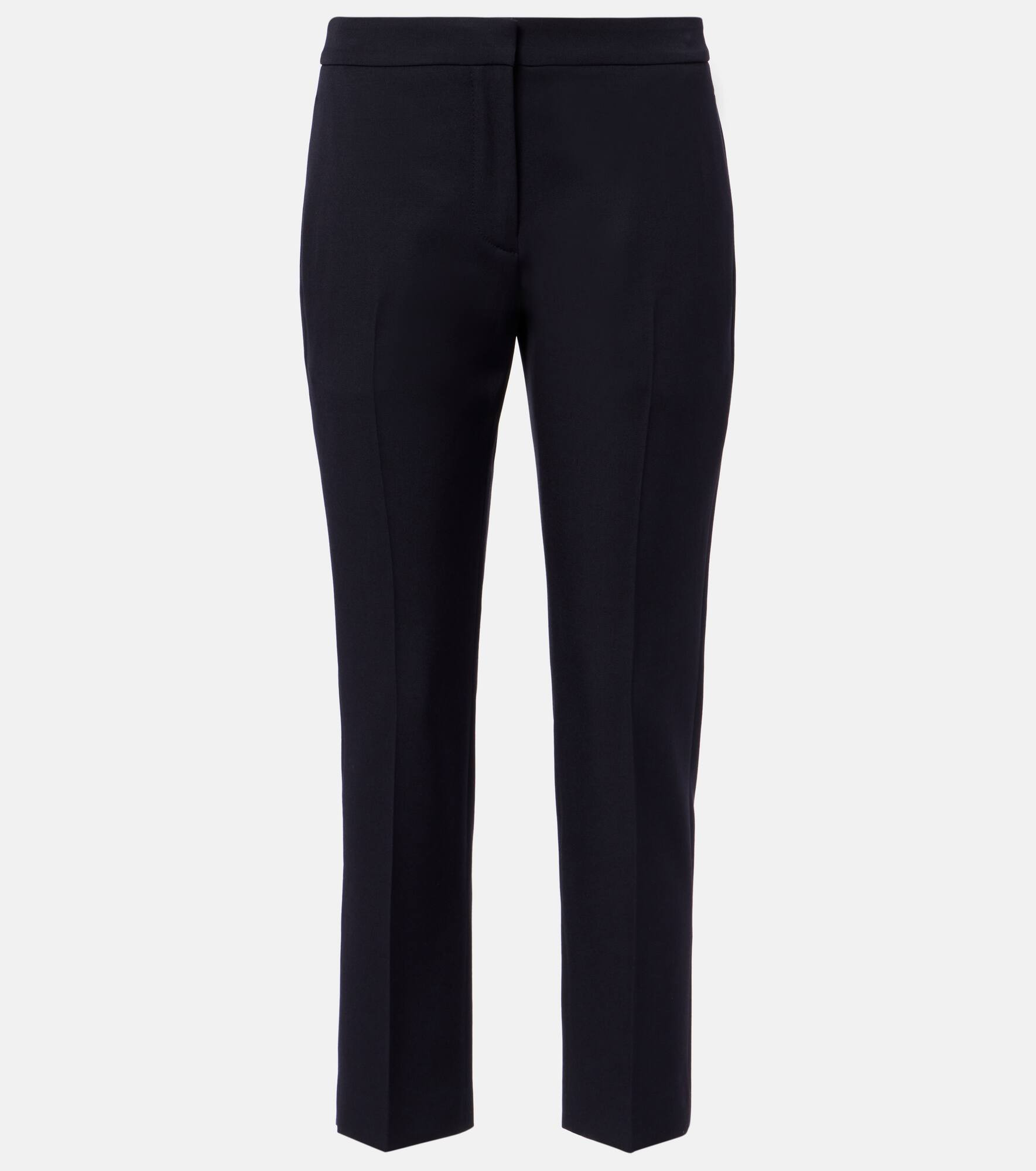 A legacy of the founder's Savile Row training, tailoring lies at the heart of McQueen. These cropped flared pants are made in Italy from wool gabardine and feature side slit and back pockets. Product Details - Material: 100% wool - Care instructions: dry clean - Made in Italy - Designer color name: Navy - Item color: blue - Pocket lining: 100% cotton - Closure: zip, hook, and button fastening - Pockets: side slit pockets, back pocket - Single pleat - Item number: P01064278 Size & Fit - True to size - Non-stretchy fabric - Flared - The model seen in the picture is 178cm-5'10" and wearing a size IT 40