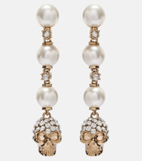 These drop earrings are decorated with Skull embellishments—a nod to McQueen's fascination with the macabre. Faux pearls and all-over crystal-embellishments complete the design, bringing a touch of dark glamor to any look. Product Details - Material: brass, crystals - Made in Italy - Item color: gold - Includes: box, dust bag - Item number: P01057063 Size & Fit - Length 4cm-1.5" - Max. width 0,7cm-0.5"