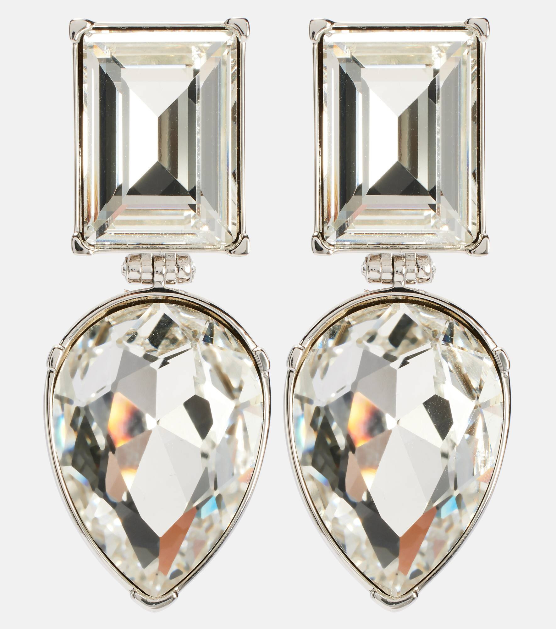 These crystal-embellished drop earrings from McQueen feature sculptural silhouettes perfect to complement any elegant look. The design is complete with push-back closures for comfortable wear. Product Details - Material: brass - Made in Italy - Item color: silver - Closure: butterfly-back fastening - Includes: dust bag, box - Item number: P01086522 Size & Fit - Length 5cm-2" - Max. width 2cm-1"