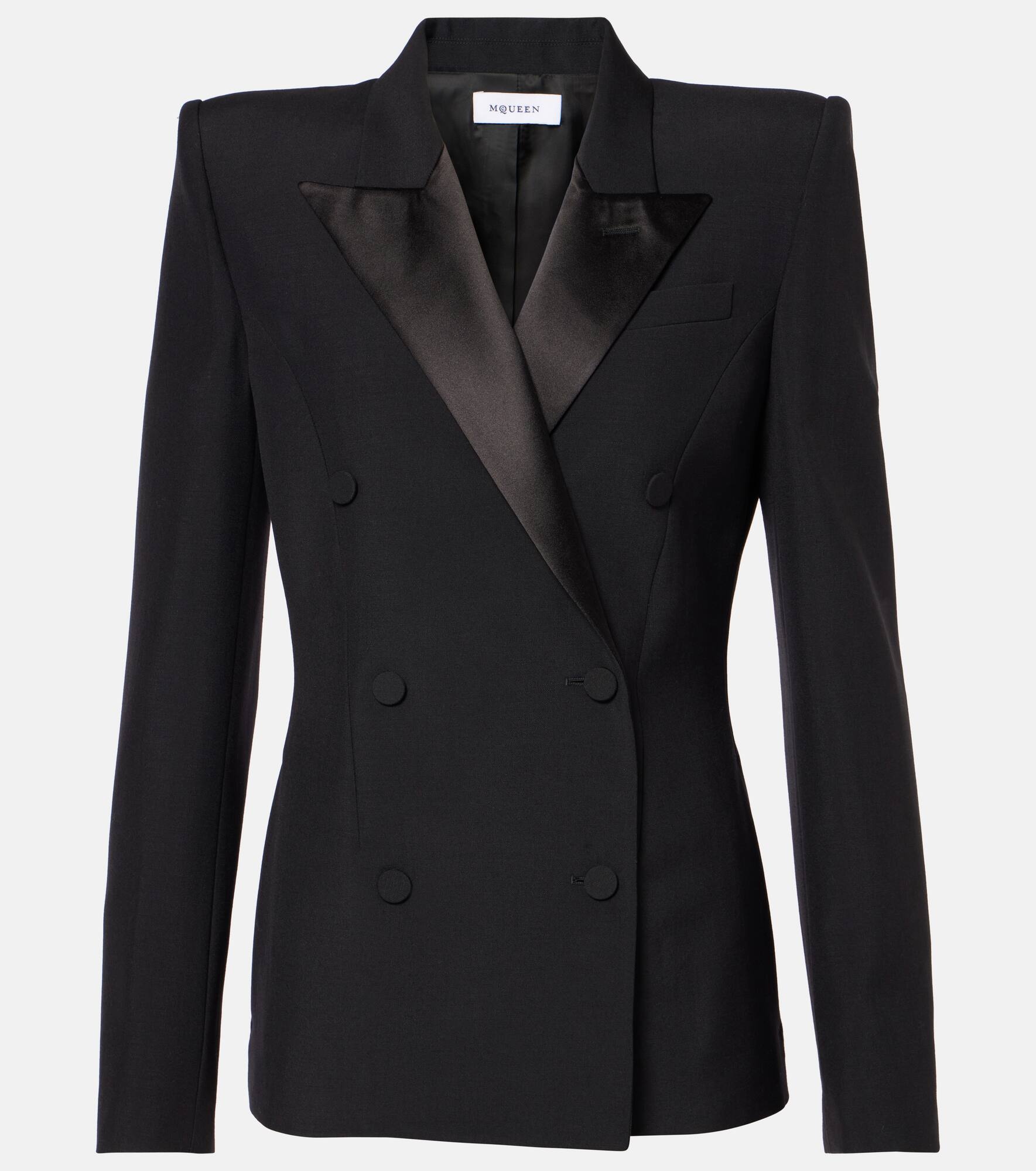 Product Details - Material: 75% wool, 25% mohair - Care instructions: dry clean - Made in Italy - Designer color name: Black - Details: 100% silk - Lining: 100% viscose - Closure: double-breasted (six buttons) - Item number: P00988546 Size & Fit - True to size - Cinched waist - Non-stretchy fabric - Falls to the hip - The model seen in the picture is 178cm-5'10" and wearing a size IT 40