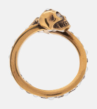 Snakes and skulls are synonymous with the gothic glamour of Alexander McQueen, and this brass ring features both. Shimmering with crystals, this design wraps artfully around the finger. Product Details - Material: brass - Made in Italy - Designer color name: 0448+Gr+Cr.Cream P. - Item number: P00523817 Size & Fit - Min. width 0.3cm-0" - Max. width 1.5cm-0.5"