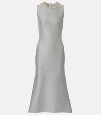 Primed for soirees and beyond, this cocktail dress from McQueen is made from a dazzling lame fabric. Sophisticated yet captivating, the style is defined by crystal and bead embellishments at the neckline. Product Details - Material: 81% viscose, 17% metallic fibres, 2% polyester - Care instructions: dry clean - Made in Italy - Designer color name: Silver/Crystal - Item color: silver - Trim: 73% viscose, 19% metallic fibres, 6% polyamide, 2% elastane - Embroidery: 50% metal, 50% glass - Details: 100% polyamide - Closure: concealed zipped back - Item number: P01121685 Size & Fit - True to size - Cinched waist - Slightly stretchy fabric - The model seen in the picture is 178cm-5'10" and wearing a size IT 40
