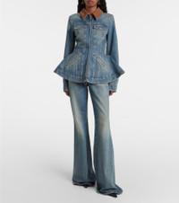 Product Details - Material: 100% cotton - Care instructions: dry clean - Made in Italy - Designer color name: Indigo Stonewashed - Closure: zipped - Pockets: back pockets - Pocket lining: 65% polyester, 35% cotton - Material II: 99.5% leather - Item number: P00988582 Size & Fit - Fits small to size - we recommend trying one size larger - Non-stretchy fabric - Slim-leg with a flared hem - High-rise - The model seen in the picture is 178cm-5'10" and wearing a size 27