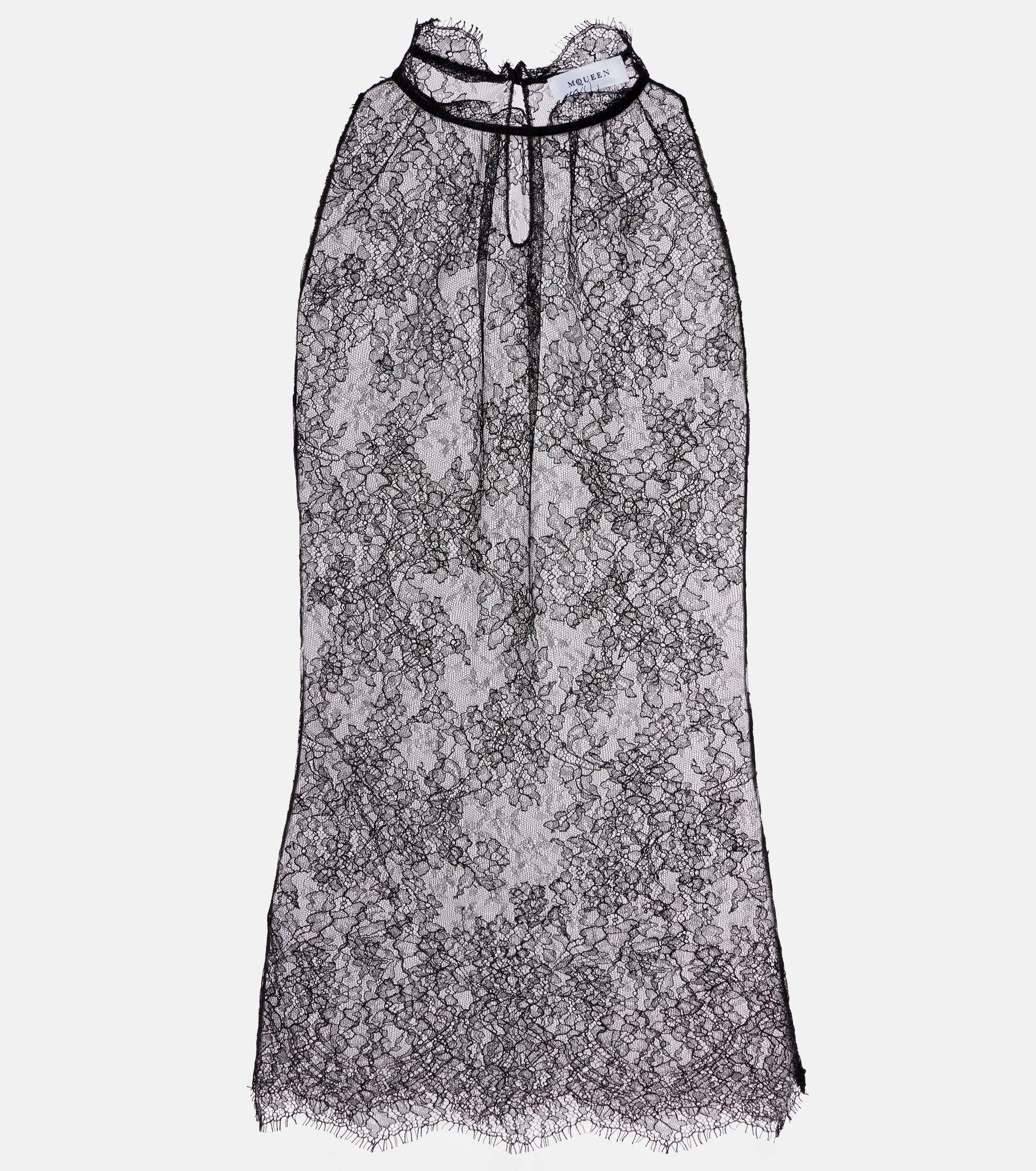 Infuse romanticism into your everyday with this McQueen top made of floral lace. The style features a round neck with scalloped trims and gathers at the chest and is complete with a keyhole closure at the back. Product Details - Material: 61% polyamide, 39% viscose - Care instructions: dry clean - Made in Italy - Designer color name: Black - Item color: black - Details: 61% polyamide, 39% viscose - Closure: zipped back - Item number: P01101334 Size & Fit - True to size - Sheer - Fitted - Non-stretchy fabric - Falls below the hip - The model seen in the picture is 178cm-5'10" and wearing a size IT 40