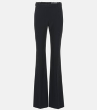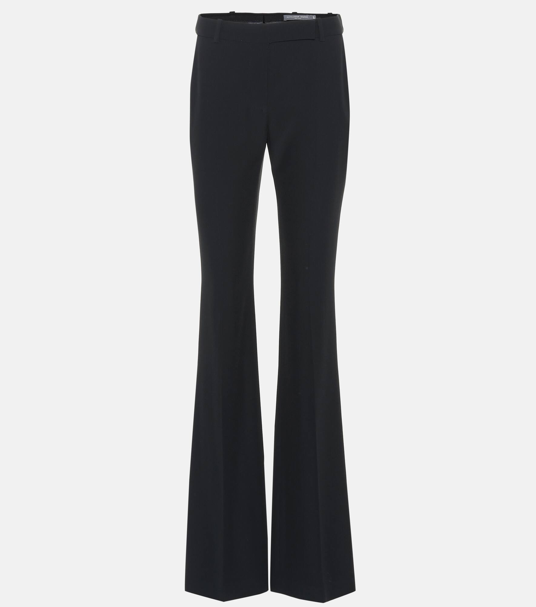 These bootcut pants from Alexander McQueen exude elegance with their timeless leg-lengthening silhouette; they fit closely through the thighs before flaring out gracefully from the knees. The pair has been expertly cut in Italy, and is rendered here in timeless black. We love how smart they look with the label's coordinating single-breasted jacket. Product Details - Pocket lining: 100% cupro - Closure: zipper fly, button and hook fastenings - Belt loops - Designer color name: Black - Made in Italy - Pockets: side slit pockets, back pockets - Care instructions: dry clean - Material: 48% acetate, 52% viscose - Item number: P00367394 Size & Fit - Fits small to size - we recommend trying one size larger - Tight fit at thighs - Slightly stretchy fabric - Slim-leg with a flared hem - The model seen in the picture is 178cm-5'10" and wearing a size IT 42