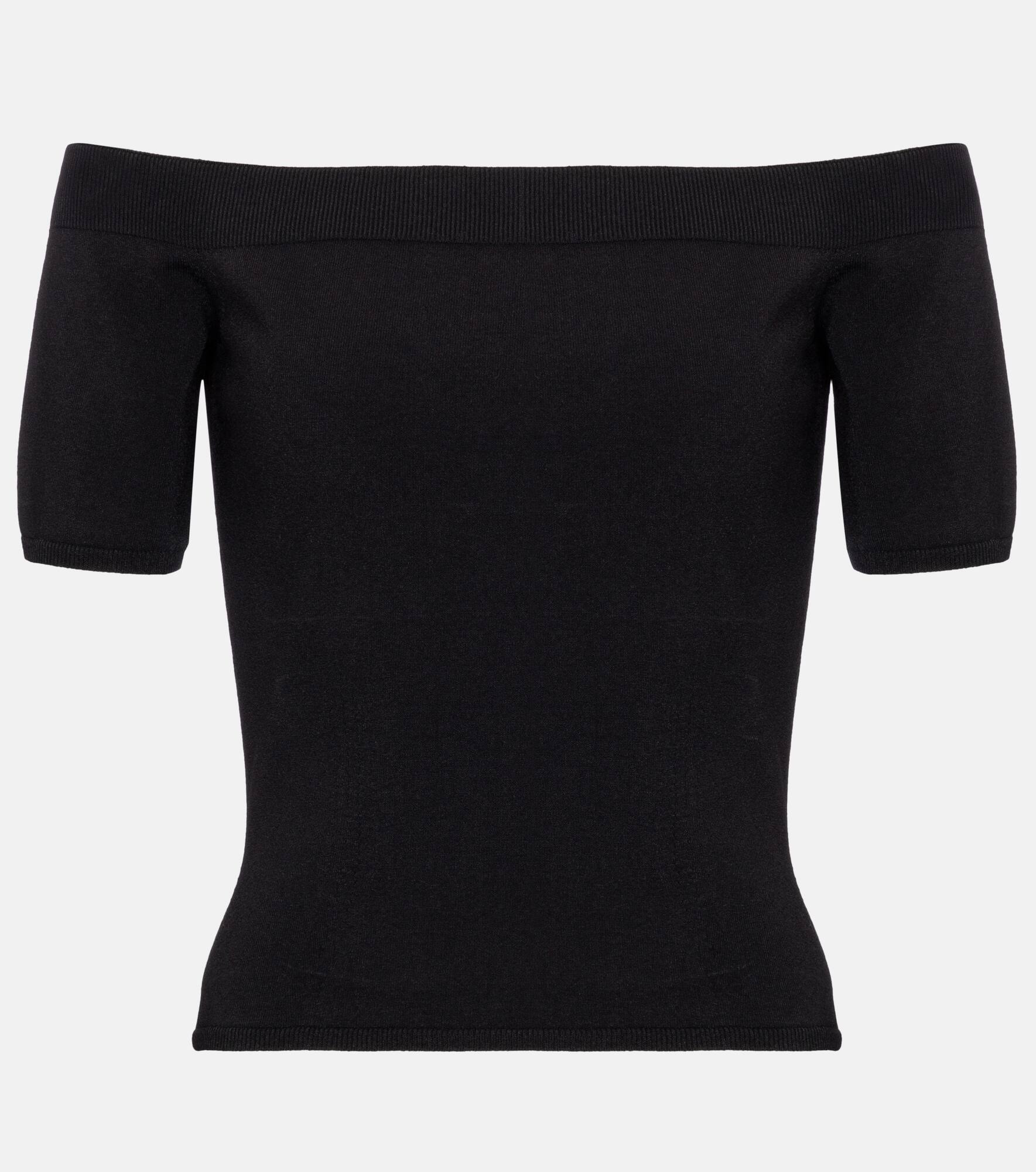 This black top is a versatile way to embrace the elegant mood of Alexander McQueen's Pre-Fall '21 collection. Made in Italy, it has a form-fitting shape with an off-shoulder neckline and ribbed edges. Product Details - Material: 83% viscose, 17% polyester - Care instructions: dry clean - Made in Italy - Designer color name: Black - Item number: P00571593 Size & Fit - True to size - Off-the-shoulder - Fitted - Mid-weight material - Stretchy fabric - Slightly cropped - The model seen in the picture is 178cm-5'10" and wearing a size XS