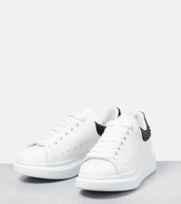 Defined by chunky rubber soles, Alexander McQueen's Oversized leather sneakers elevate the everyday with built-in wedges. An iconic style from the brand, this pair is finished with tonal laces and embellished heel counters. Product Details - Lining: leather - Sole: leather insole, rubber sole - Toe shape: round toe - Comes with extra laces - Closure: lace-up - Designer color name: White/Black - Comes with a box, Comes with dust bags - Made in Italy - Upper: leather - Item number: P00772721 Size & Fit - True to size - European sizes - 3,5cm-1.5" platform (size EU 38) - 5cm-2" wedge heel (size EU 38)