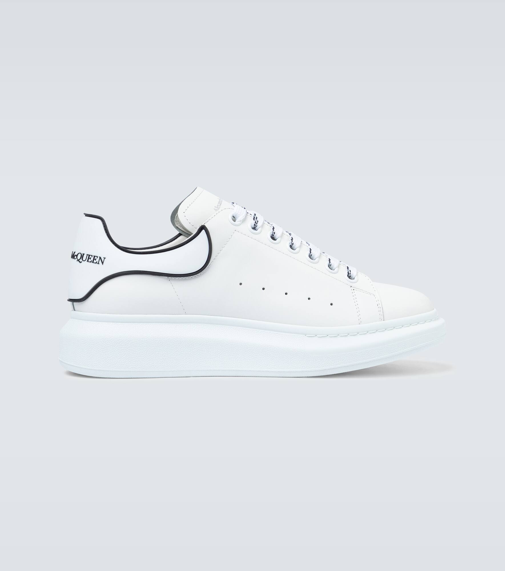 Defined by chunky rubber soles, Alexander McQueen's Oversized leather sneakers elevate the everyday with built-in wedges. An iconic style from the brand, this pair is finished with striped laces and outlined heel counters. Product Details - Lining: leather - Sole: leather insole, rubber sole - Toe shape: round toe - Upper: calf leather - Closure: lace-up - Made in Italy - Item number: P00478814 Size & Fit - True to size - Half sizes please take the next size up - European sizes