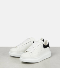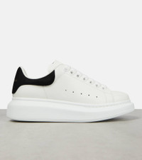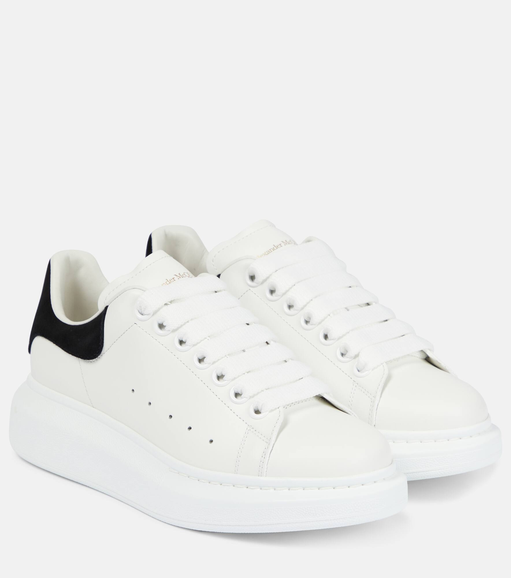 Defined by chunky rubber soles, Alexander McQueen's Oversized leather sneakers elevate the everyday with built-in wedges. An iconic style from the brand, this pair is finished with tonal laces and black heel counters. Product Details - Lining: leather - Sole: leather insole, rubber sole - Toe shape: round toe - Upper: calf leather - Closure: lace-up - Designer color name: White Black - Made in Italy - Item number: P00360218 Size & Fit - True to size - European sizes - 3,5cm-1.5" platform (size EU 38) - 5cm-2" wedge heel (size EU 38)