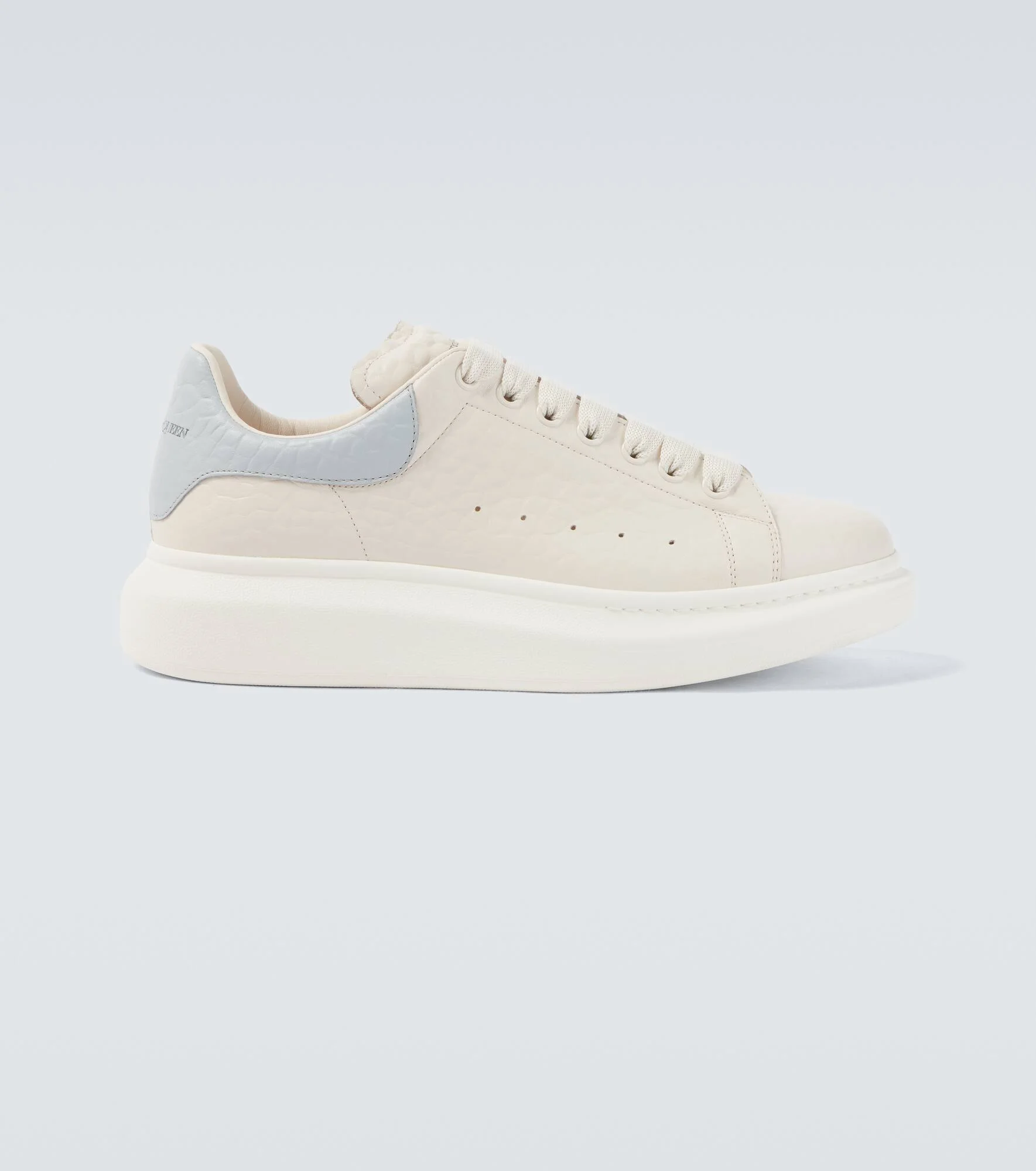 Defined by chunky rubber soles, Alexander McQueen's Oversized leather sneakers elevate the everyday with built-in wedges. An iconic style from the brand, this pair is finished with tonal laces and light blue leather heel counters. Product Details - Upper: lamb leather - Lining: leather - Sole: leather insole, rubber sole - Color: white - Toe shape: round toe - Made in Italy - Includes: shoe box - Designer color name: Off Wh/Ice Blu/Off W - Item color: white - Closure: lace-up - Item number: P01141135 Size & Fit - True to size - European sizes