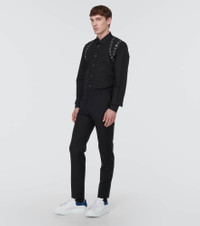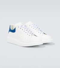 Alexander McQueen's low-top sneakers are crafted from leather with oversized rubber soles. An iconic style from the brand, this pair is finished with tonal laces and signature contrasting heel counters. Product Details - Lining: leather - Sole: leather insole, rubber sole - Upper: leather - Closure: lace-up - Made in Italy - Comes with a box - Toe shape: round toe - Item number: P00837201 Size & Fit - Fits slightly large to size - we recommend trying a half size smaller - European sizes - 5cm-2" heel (size EU 42)