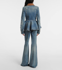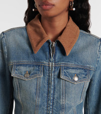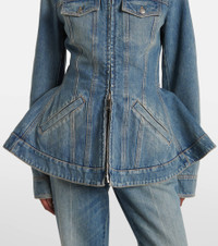 Alexander McQueen’s denim jacket embodies the brand’s play on contrasts. A soft corduroy collar offsets a structured peplum silhouette creating a striking balance. Product Details - Material: 100% cotton - Care instructions: dry clean - Made in Italy - Designer color name: Indigo Stonewashed - Closure: zipped front - Item number: P00988578 Size & Fit - True to size - Cinched waist - Non-stretchy fabric - Falls to the hip - The model seen in the picture is 178cm-5'10" and wearing a size IT 40