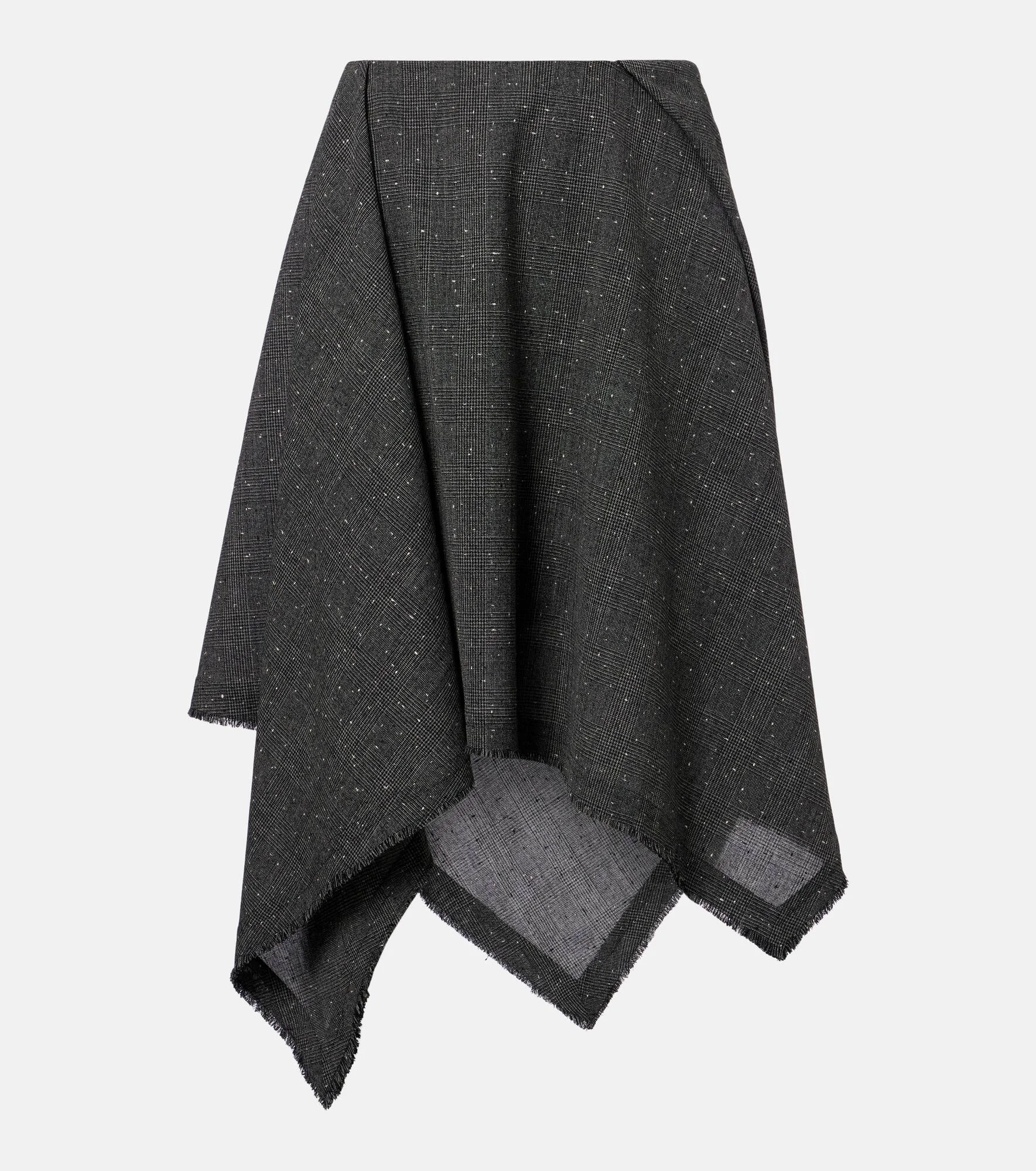 McQueen is celebrated for its uncompromising expression of individuality, subversive strength, and true power. Made in Italy purely from wool, this midi skirt features a Prince of Wales checked pattern and an asymmetric hemline. Product Details - Material: 100% wool - Care instructions: dry clean - Made in Italy - Color: grey - Designer color name: 1080 - Lining: 74% acetate, 26% silk - Closure: concealed zipped back - Hem: uneven - Item number: P01121944 Size & Fit - Fits large to size - we recommend trying one size smaller - Non-stretchy fabric - The model seen in the picture is 178cm-5'10" and wearing a size IT 38
