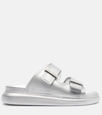These rubber slides from McQueen feature logo-engraved buckles for a refined finish. The silver-tone pair has molded footbeds and raised soles that recall the label's coveted sneakers. Product Details - Upper: rubber - Lining: rubber - Sole: rubber insole and sole - Color: silver - Toe shape: round open toe - Made in Italy - Includes: shoe box - Designer color name: Silver - Item color: silver - Item number: P01142254