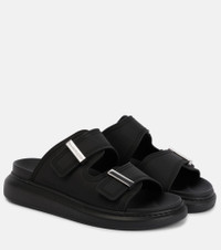 Whether bearing your toes or styled with socks, you'll find endless opportunities to wear these black slides from Alexander McQueen. Made with versatile rubber soles, this design features a duo of straps with silver hardware. Product Details - Toe shape: round open toe - Lining: rubber - Closure: faux-buckle fastening - Upper: rubber - Comes with a box - Sole: rubber insole and sole - Made in Italy - Comes with dust bag - Item number: P00701606 Size & Fit - True to size - European sizes - 3cm-1" platform (size EU 38) - 4cm-1.5" wedge heel (size EU 38)