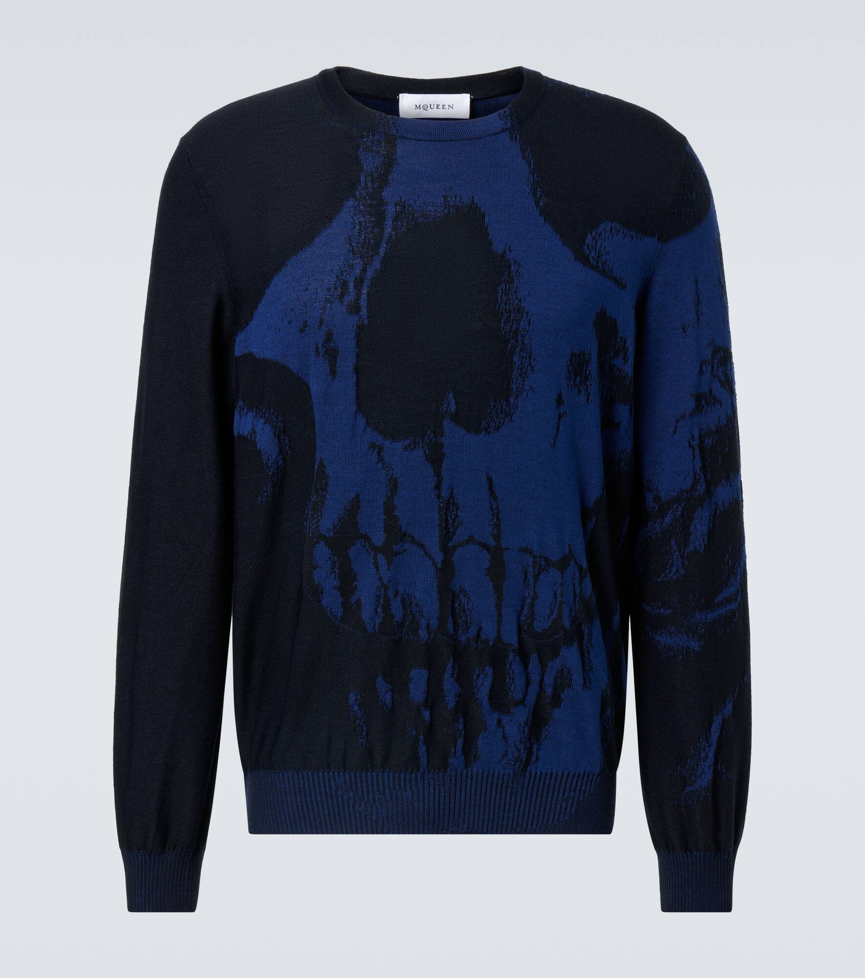 Expertly Italian-crafted from pure wool, this crewneck sweater is finished with ribbed trims and intricate jacquard detailing. This piece is decorated with a Skull motif, nodding to McQueen's fascination with the macabre. Product Details - Material: 100% wool - Care instructions: dry clean - Made in Italy - Designer color name: After6Blue/Black - Item color: blue, black - Trim: 100% wool - Cuff: ribbed - Hem: ribbed - Item number: P01076843 Size & Fit - True to size - Straight fit - Slightly stretchy fabric - Falls to the hip - The model in the picture is 185cm-6'1" and wearing a size L