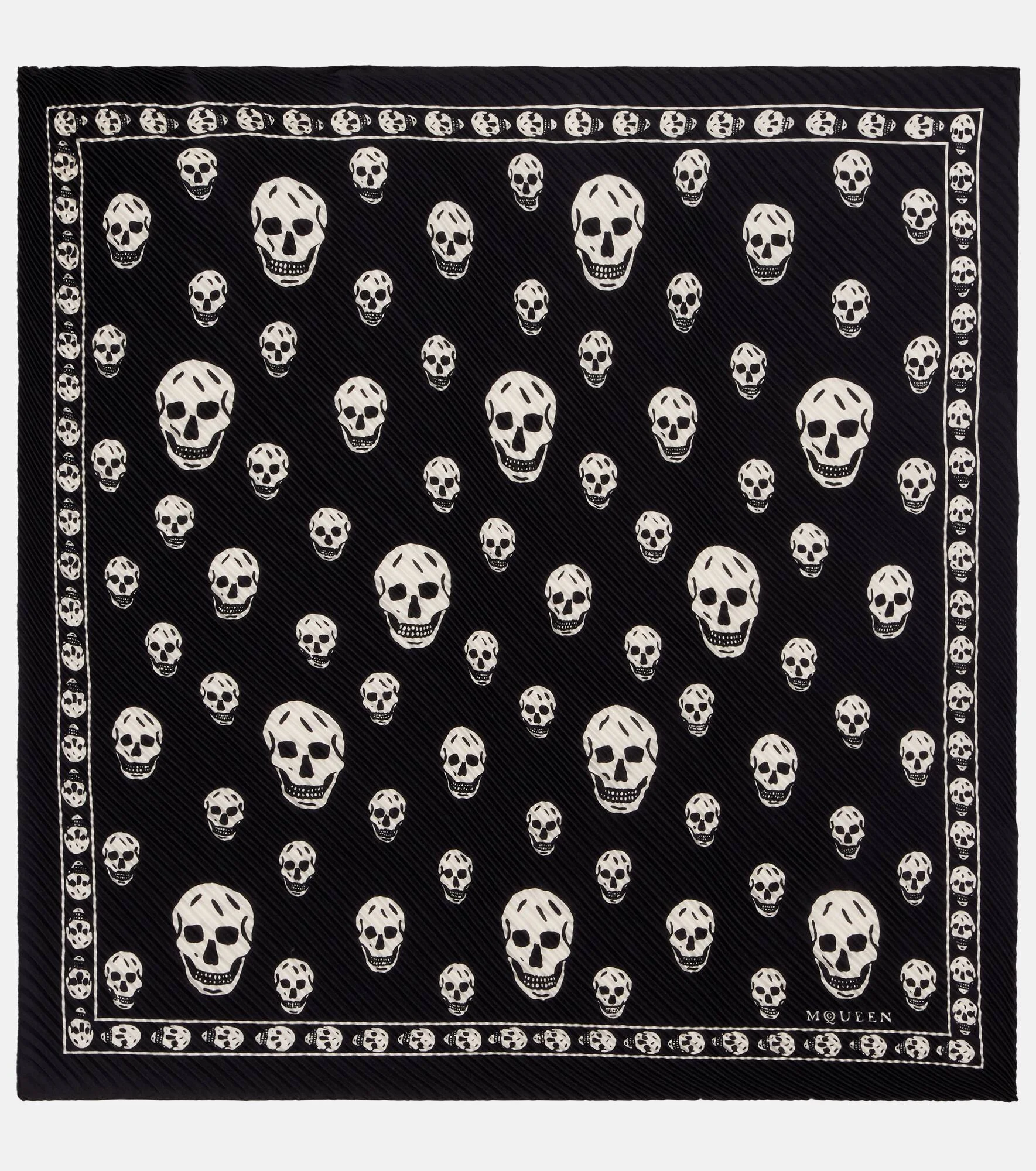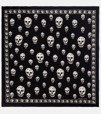 This McQueen scarf is made in Italy from pure silk to a square silhouette. The piece is decorated with a Skull motif, which nods to the brand's fascination with the macabre. Product Details - Material: 100% silk - Care instructions: dry clean - Made in Italy - Color: black - Designer color name: Black/Ivory - Item color: black, white - Item number: P01142576