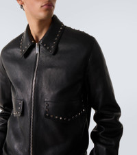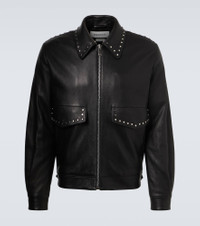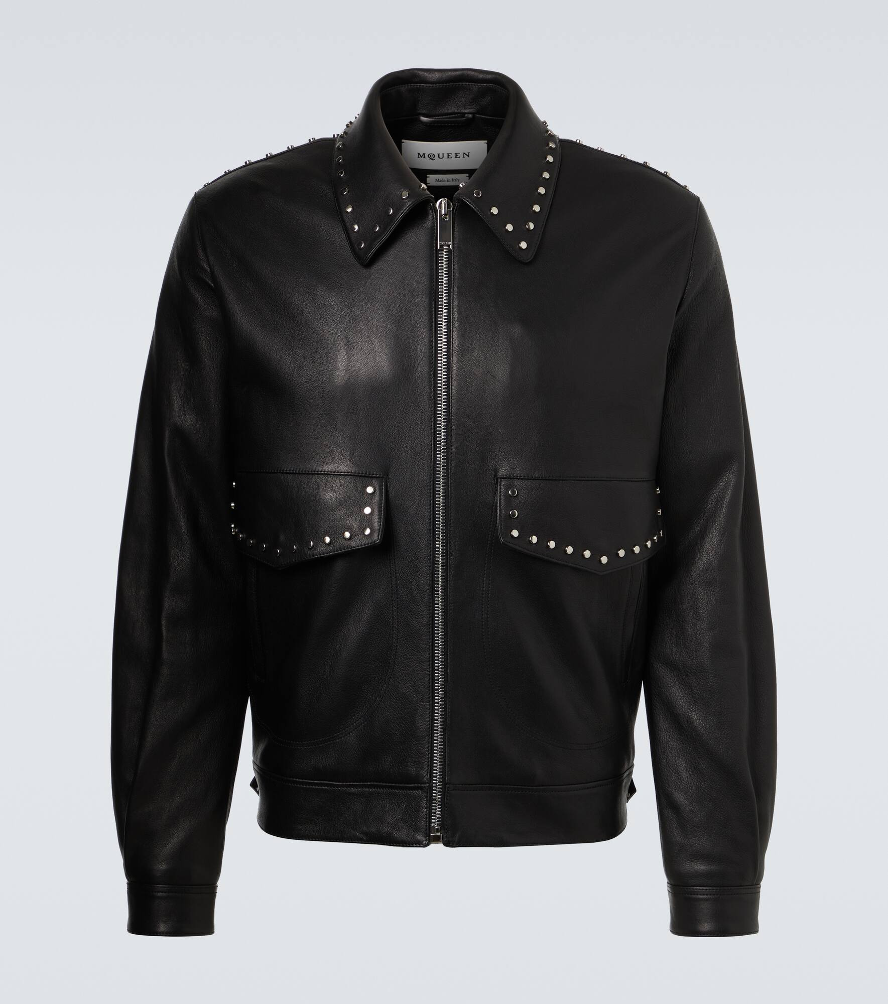 Bring a subtle edge to daily looks with this leather jacket from McQueen. The design is crafted from supple lamb leather and is complete with studs along the pockets, collar, and shoulders. Product Details - Material: 100% lamb leather - Care instructions: do not wash - Made in Italy - Designer color name: Black - Item color: black - Lining: 100% viscose - Filling: 100% polyester - Contains non-textile parts of animal origin - Closure: zipped front - Collar: classic (Straight point) - Pockets: patch pockets, side slit pockets, internal pocket - Adjustable tabs at the waist - Elasticated waistband - Cuff: two buttons - Item number: P01076842