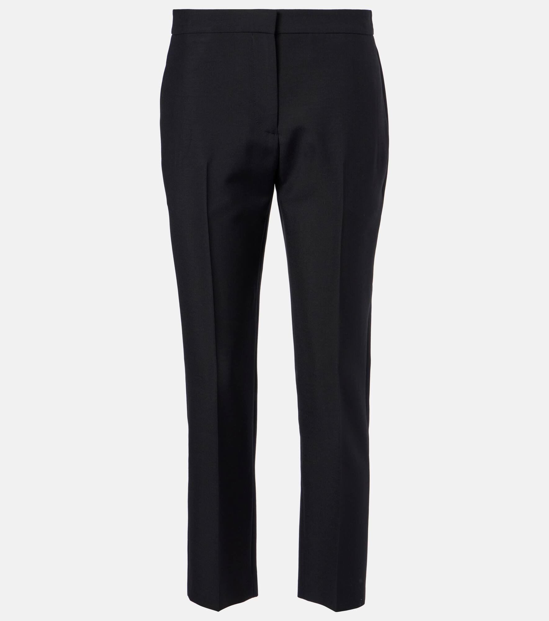 Crafted from wool and mohair, these cropped straight pants from McQueen feature a sleek, single-pleated silhouette. The design is finished with side slit pockets and a zip, hook, and button closure. Product Details - Material: 75% wool, 25% mohair - Care instructions: dry clean - Made in Italy - Designer color name: Black - Item color: black - Lining: 100% cotton - Closure: zip, hook, and button fastening - Pockets: side slit pockets, back pocket - Single pleat - Partially lined - Item number: P01064279 Size & Fit - True to size - Non-stretchy fabric - Straight leg - The model seen in the picture is 178cm-5'10" and wearing a size IT 40