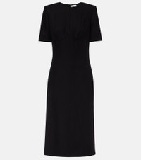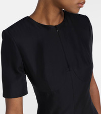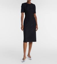 A legacy of the founder's Savile Row training, tailoring lies at the heart of McQueen. This midi dress is crafted from a wool blend and boasts a hem that falls just below the knees. Product Details - Material: 72% wool, 28% viscose - Care instructions: dry clean - Made in Italy - Designer color name: Black - Item color: black - Lining: 74% acetate, 26% silk - Vent: single - Closure: invisible zipper - Item number: P01064302 Size & Fit - True to size - Oversized shoulders - Shoulder pad inserts - Non-stretchy fabric - The model seen in the picture is 178cm-5'10" and wearing a size IT 40