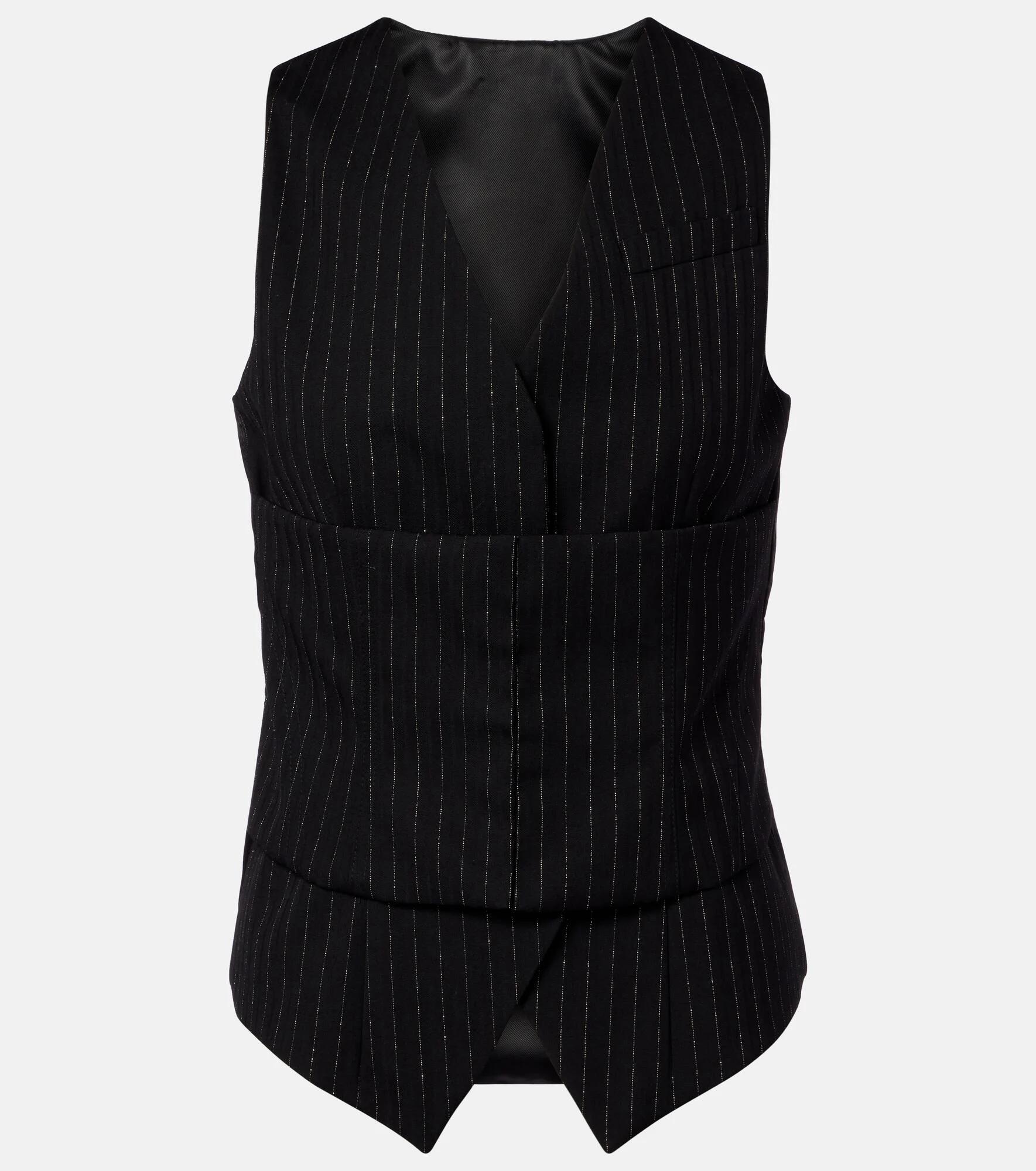 Crafted from wool, this vest from McQueen features a fitted, structured silhouette with a cropped length. The sleek design offers a charming, smooth effect with a concealed buttoned front closure. Product Details - Material: 100% wool - Care instructions: dry clean - Made in Italy - Color: black - Designer color name: 1389 - Lining: 100% cupro - Closure: concealed buttoned front, hook-fastening front - Item number: P01121965 Size & Fit - True to size - Cinched waist - Adjustable at the waist - Non-stretchy fabric - Falls to the hip - The model seen in the picture is 178cm-5'10" and wearing a size IT 40
